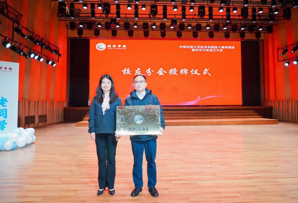 会上,副校长李红燕博士为经济学院校友分会授牌,招生与就业工作处处长舒服明同志为数字经济产业学院授牌。