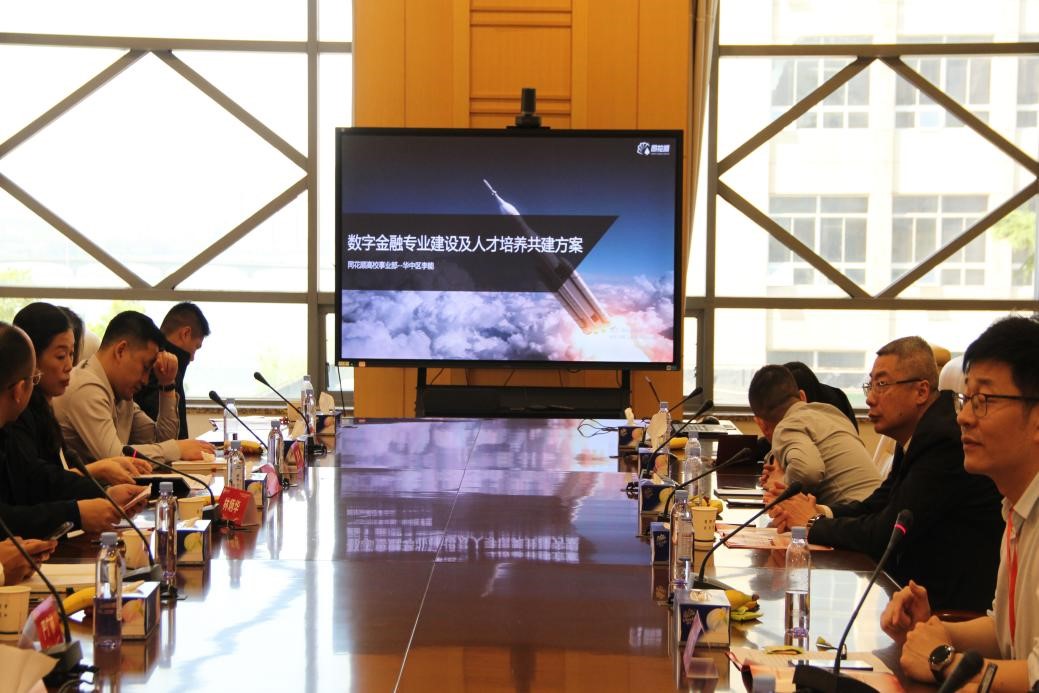 杭州同花顺数据开发有限公司高校事业部华中区李能,以《数字金融专业建设及人才培养共建方案》为题,分别从三个方面介绍了与beat365英国正版唯一网址数字经济现代产业学院进行联合人才培养的思路。一是通过企业游学和企业工程师入校等活动开拓学生视野;二是设计联合共建课程,组织企业和学生的双向沟通;三是制定金融训练营和行业大赛,丰富学生经验,达到人才培养目标,为经济发展提供人才支撑。