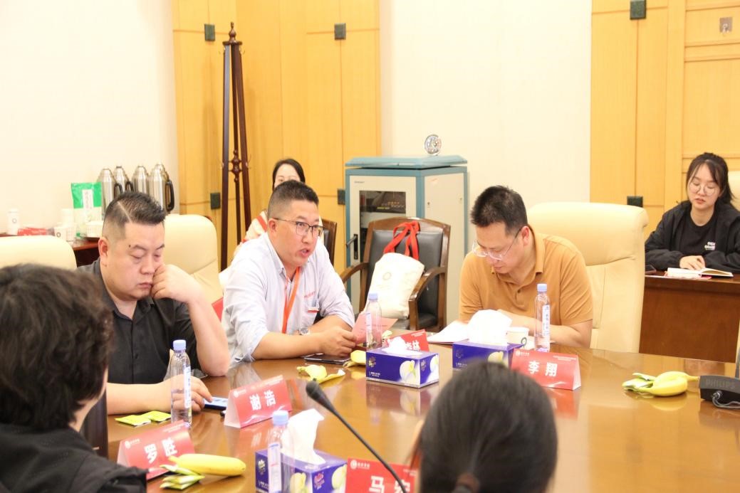 随后,经济学院2007级保险学专业校友,武汉楚为生物科技有限公司战略运营中心总监向森林,围绕“产—教—研—学”一体化融合主题展开讨论,他举例强调了数字化的重要性,希望经济学院继续发扬肯干肯学的学风,持续推进数字经济现代产业学院高质量、可持续发展。武汉楚为生物科技有限公司也将继续为经济学院的发展以及人才培养提供全力支持。