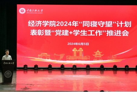 为深入开展铸牢中华民族共同体意识实践教育,充分发挥寝室育人功能,进一步加强党建引领,统筹推进学生教育管理服务,6月5日下午,经济学院于大礼堂举办2024年“同寝守望”计划表彰暨“党建+学生工作”推进会。经济学院党委书记戴迎峰、党委副书记刘君强、正处级专职组织员黄仕清、副院长马楠、各年级辅导员、受表彰寝室、2023级全体学生及2022级学生骨干参加本次活动。本次会议由2023级辅导员华文健主持。