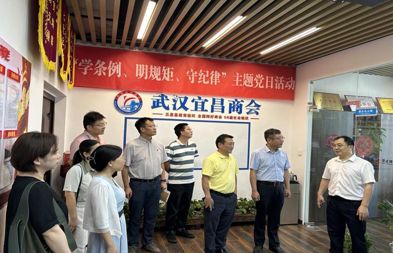在经济学院95级校友、宜昌商会秘书长高爱民的陪同下,经济学院领导和老师们考察了商会的运行情况。武汉宜昌商会是宜昌籍在汉企业家组成的非营利性社团,企业会员来自汽车销售、智能制造、工程建设、人力资源、生物医药、环保科技等多个产业,商会自2012年成立以来,坚持以“党建引领三服务”,多年蝉联全国、湖北省、武汉市的“四号商会”称号,为汉宜两地政企服务和经济发展做出了重要贡献。