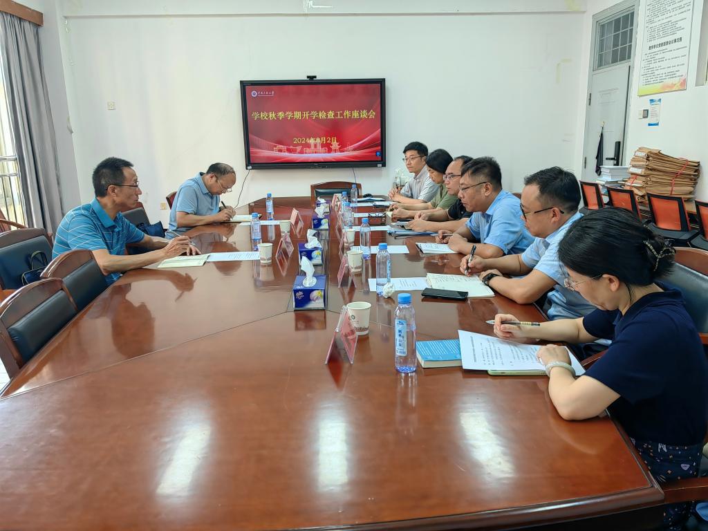 根据学校2024年秋季开学相关工作要求,9月2日上午,学校秋季学期开学检查工作组成员党委宣传部常务副部长桂孙来、国有资产与实验室管理处副处长余俊来学院检查工作。