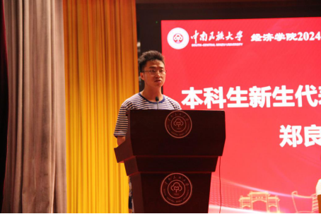 (本科新生代表郑良宇发言 摄影记者:吴培元)