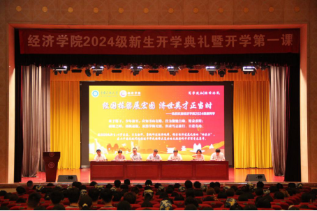 经国栋梁展宏图,济世英才正当时。本次开学典礼帮助全体新生进一步明确了大学阶段的奋斗目标,并为2024级新生正确把握思维方式与学习方式提供了科学高效的方法,同时为经济学院营造奋发向上、齐头并进的学习风气打下了坚实的基础。未来,经济学院将多措并举,以铸牢中华共同体意识为主线,潜心立德树人,立足学院特色,培育时代新人,为中国式现代化贡献青春力量。
