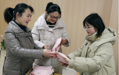 随后,与会领导和辅导员、班导师走到学生面前,为学生送上考研大礼包。礼包包括考试文具套装、纸巾、湿巾、士力架等物资,现场洋溢着温暖的笑容和愉悦的笑声。