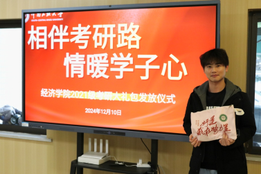 为加强对考研学子的关心慰问,鼓励他们积极应考,12月10日中午,经济学院在北区“一站式”学生社区会议室召开“相伴考研路,情暖学子心”为考研大礼包发放仪式。经济学院全体院领导,2021级班导师和辅导员,考研学生代表参加了仪式。仪式由2021级辅导员赵驰主持。