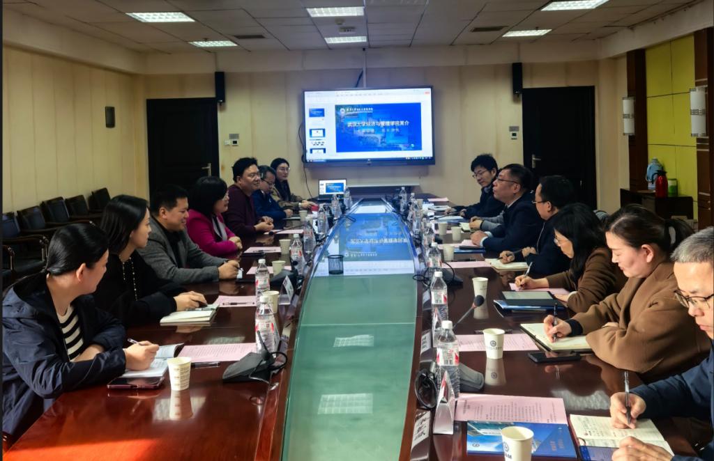 为贯彻落实学校党政系列重大决策部署,进一步优化学院治理结构和体系、学科专业布局、推进“双一流”建设,我院领导班子及两办人员一行8人赴武汉大学经济与管理学院开展专题调研。武汉大学经济与管理学院党委书记王丽萍、党委副书记李好、副院长黄敏学、刘林青,学院各办公室相关负责人参加了座谈会。