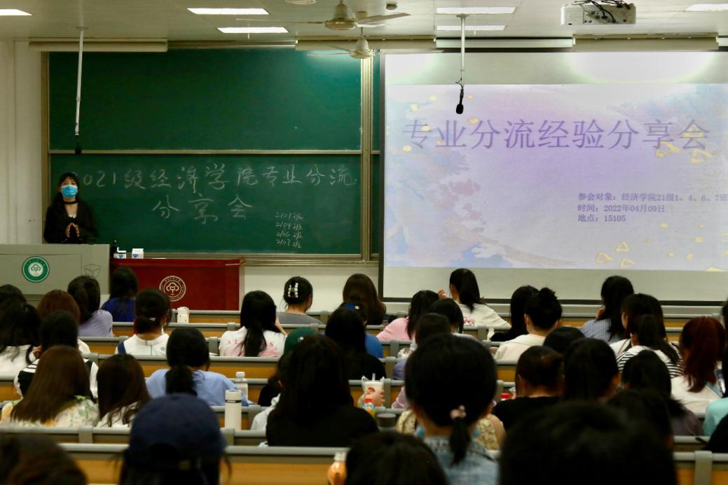 为推动专业分流工作有序开展,帮助同学们了解各专业的学科特点,4月9日-10日,经济学院2021级分批次举行了专业分流经验分享会。本次分享会邀请了不同专业的学生代表分享专业认识和学习经验,经济学院2021级辅导员张竹云、部分班级班导师、2021级全体班助参加分享活动,2021级各班同学到场聆听。