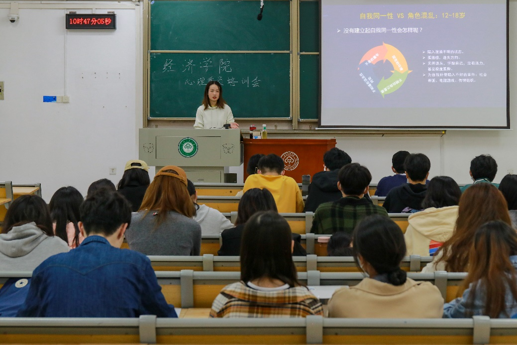 为加强学生心理健康教育,促进学生身心健康成长,4月30日上午,经济学院在15号教学楼120教室举办了学生心理委员及寝室长培训会。培训会邀请到生物医学工程学院辅导员叶颖主讲,经济学院2020级、2021级各班的心理委员和2021级寝室长到场参加会议。