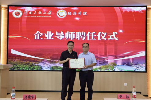 讲座开始前,李波向夏晓华颁授聘书,聘任其为学院企业导师。
