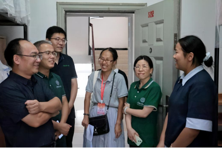 图为院领导走访慰问本科生新生宿舍