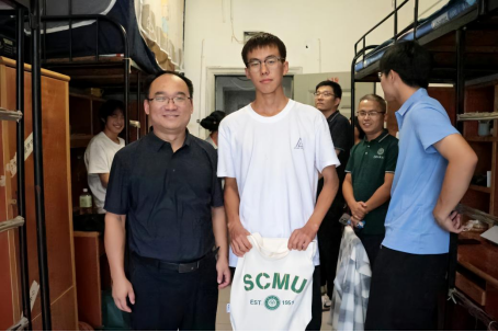 图为院领导走访慰问研究生新生宿舍