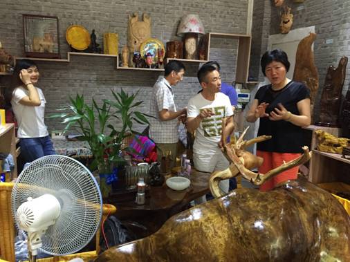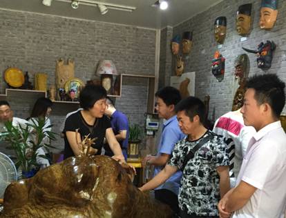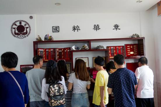 老师和学员们在欣赏来凤漆筷的各类产品。