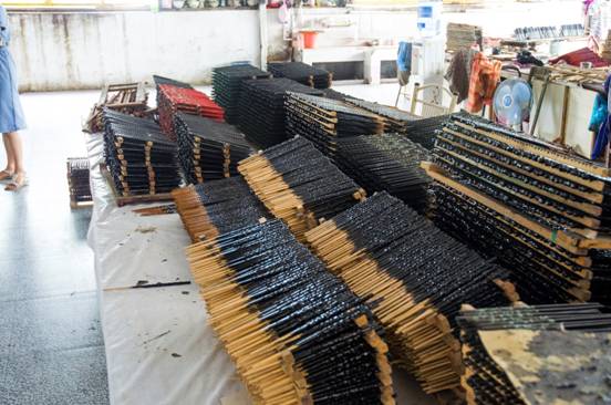 来凤漆筷刷漆后的半成品。