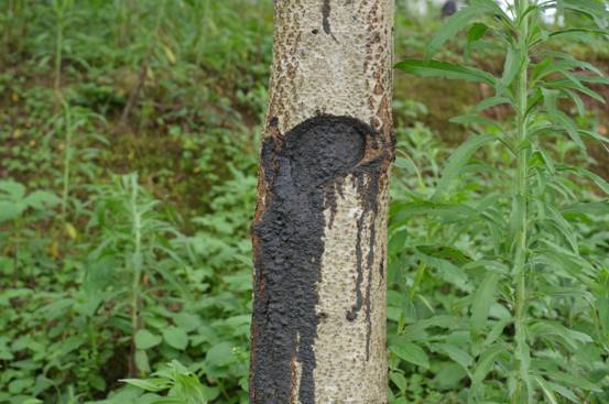 这道口子是割漆之后留下来的,黑色的部分是有流出来的大漆氧化后形成的,“漆黑”一词就是由此而来,大漆是一种纯天然涂料,无毒无害无污染,防水防潮防高温,是最理想的涂料,很多学员以前都只是用过大漆,知道大漆的优点,却不知道漆树长什么样,是怎样割下来的,来到了漆树林就相当于来到了漆艺家的圣地,每个人都怀着崇敬之心,看着自己平时最熟悉,此刻又有些陌生的伙伴,感谢这漆树赐予自己宝贵的液体“大漆”。