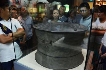 工作人员讲解完后,大家聚拢在展柜前仔细观摩展品,并发表自己的见解。