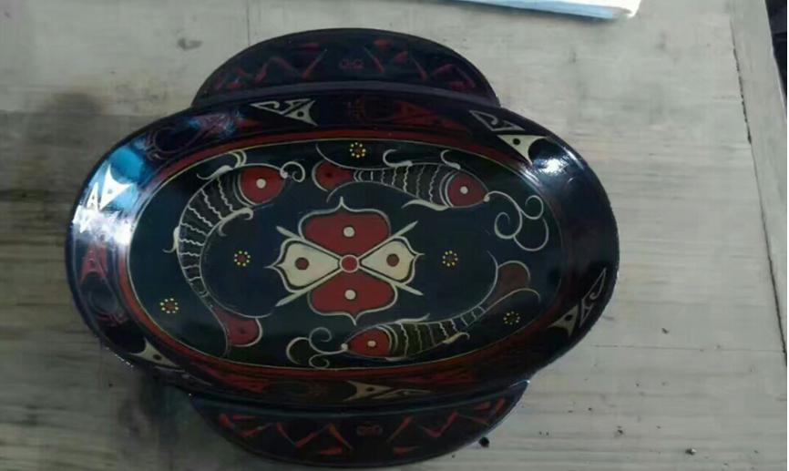 这个耳杯是以荆州出土的耳杯作为原型进行创作的。 这是“漆豆”豆的顶端凹下去得很浅,据历史记载的是楚人在吃饭时,盛放佐料,供人蘸食。“古人没有味精,饭菜缺少调味品,吃之前,就放在豆内蘸食佐料。”不过这是贵族人才能享有的。