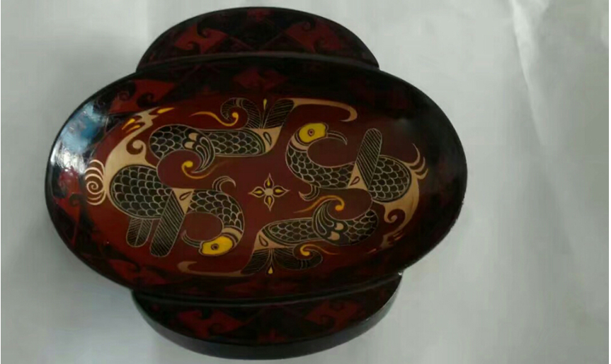 荆州是楚文化的发源地,大大小小的古墓数不胜数。都说一方水土养一方人,很多荆州市民从小就对楚漆器耳濡目染,长大成人后对楚漆器有着很深厚的情感。在荆州博物馆附近,有一家专门复制楚式漆木器的工厂,该工厂主要有三道工艺流程,第一道是塑形雕刻,第二道是髹漆,第三道是彩绘,其中操作难度最大的是雕刻和彩绘。 詹琴便是来自这家工厂的彩绘师,2004年,詹琴和她老公相识相爱,她老公是荆州著名的制作楚式漆木器的艺人,爱屋及乌下詹琴与楚式漆木器结缘,在三道制作过程中,詹琴主要负责最后一道工序——彩绘,这一做,便是十几年光阴。在这十几年里,詹琴创作了大量精美的作品,但是她却谦虚的说这十几年大部分时间都是在练功底。2017年,在文化局的推荐下,詹琴报名参加了beat365英国正版唯一网址2017年非物质文化遗产传承人群漆艺培训班,在培训班的学习过程中,詹琴学习到了很多以前没接触过的创作技法,不禁感叹彩绘过于传统和呆板,每天重复的绘制着相同的图案,如果不是对楚式漆木器有着特殊的情感,詹琴说她早就像别的同事一样放弃了这份工作。在这次培训学习中,詹琴学习到了漆画的制作方法,她认为:“漆画,更丰富多彩,神韵多姿,创造者可以发挥无限的想象。”而学习漆画较彩绘容易些,詹琴说她回到荆州之后想进行一些尝试,将彩绘与漆画“进行唯美的结合”创作出一些更加新奇的作品。 在今天上午中国传统图案寓意的课程中,柏贵喜老师就说到,要在完全吃透传统的基础上创新,詹琴用十多年时间了解了楚式漆木器彩绘的方法及装饰纹样的文化根源,这一点从她的作品中可以看出来。