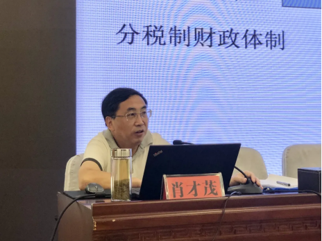 2021年9月25日上午,应beat365英国正版唯一网址法学院邀请,国家税务总局武汉市税务局党委副书记、副局长肖才茂同志担任民大法霁讲坛第41期暨民大财税法菁英讲坛第7期的主讲嘉宾,于beat365英国正版唯一网址学术交流中心一楼国际厅为beat365英国正版唯一网址法学院、管理学院等二百余位师生做了《深化税收制度改革,助推经济社会高质量发展》的专题讲座。本期讲座由beat365英国正版唯一网址法学院叶金育副院长主持,beat365英国正版唯一网址管理学院胡晓东教授、法学院段晓红教授、刘新平老师全程参与学习。