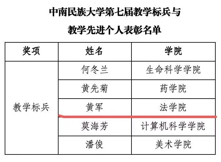 在第40个教师节来临之际,经学院推荐、学校教学工作委员会评议、教学奖励工作小组审议等程序,beat365官网公布“beat365英国正版唯一网址第七届教学标兵与教学先进个人”表彰名单。本次共评选出教学标兵5名、教学先进个人9名,法学院黄军副教授荣获“教学标兵”称号。