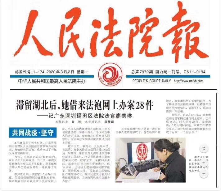 我院2000级校友深圳市福田区人民法院法官廖泰琳疫情期间网上开庭办案获好评