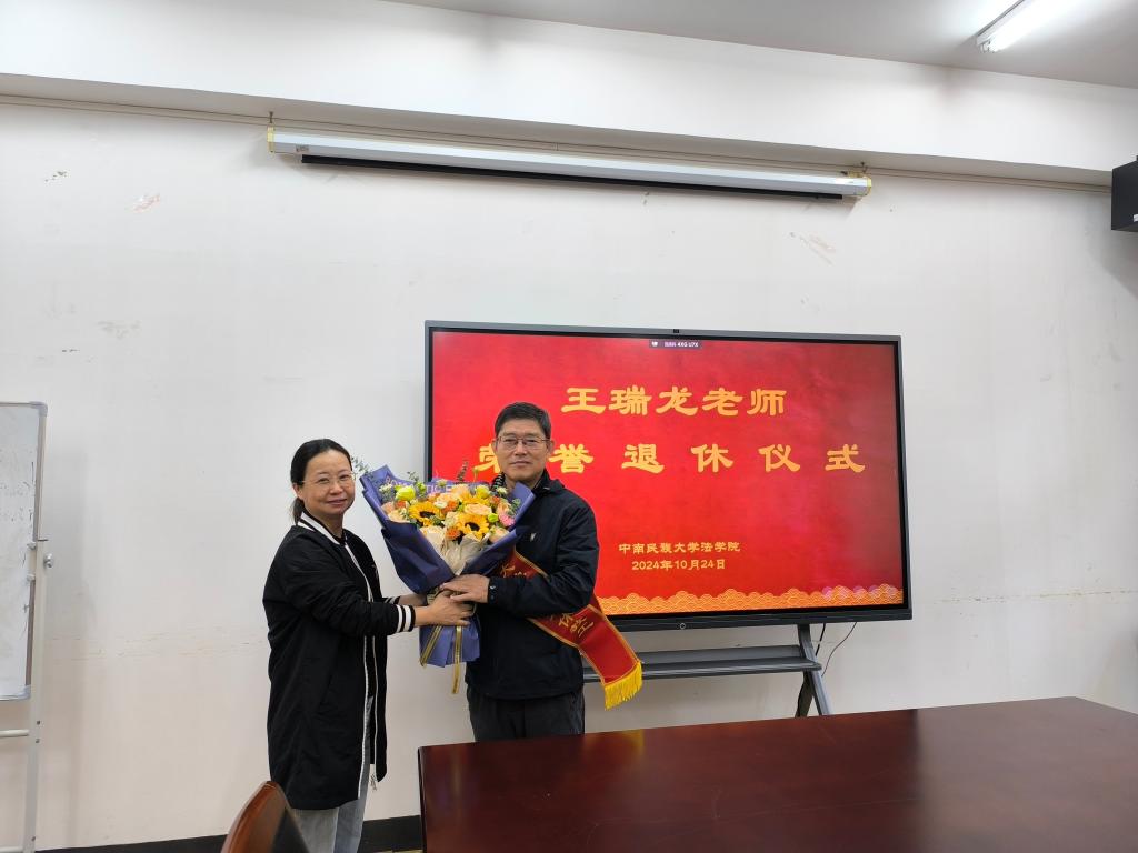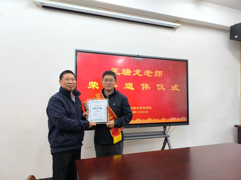 10月24日上午,学院举办王瑞龙老师荣誉退休仪式。学院党委书记邓行,党委副书记姜珍,副院长廖华、杨帆,工会主席胡纪平,教师代表张颖军参加仪式。邓行主持仪式。