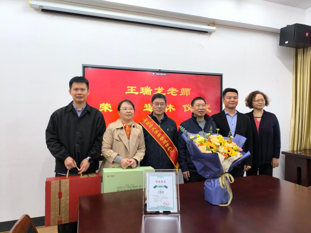 与会同志表示,王瑞龙老师从教生涯为一代代莘莘学子留下了宝贵精神财富,为人为学为教皆为楷模,对工作的热爱、专注与敬业精神,值得全体青年教师学习。王瑞龙教师既是学院发展的建设者、参与者,也是学院历史的见证者、书写者。“老夫喜作黄昏颂,满目青山夕照明”,希望王瑞龙老师在充分享受退休生活的同时,继续关心和支持学院事业发展,发挥对青年人的传帮带作用,为学院各项事业提质增效做出贡献。