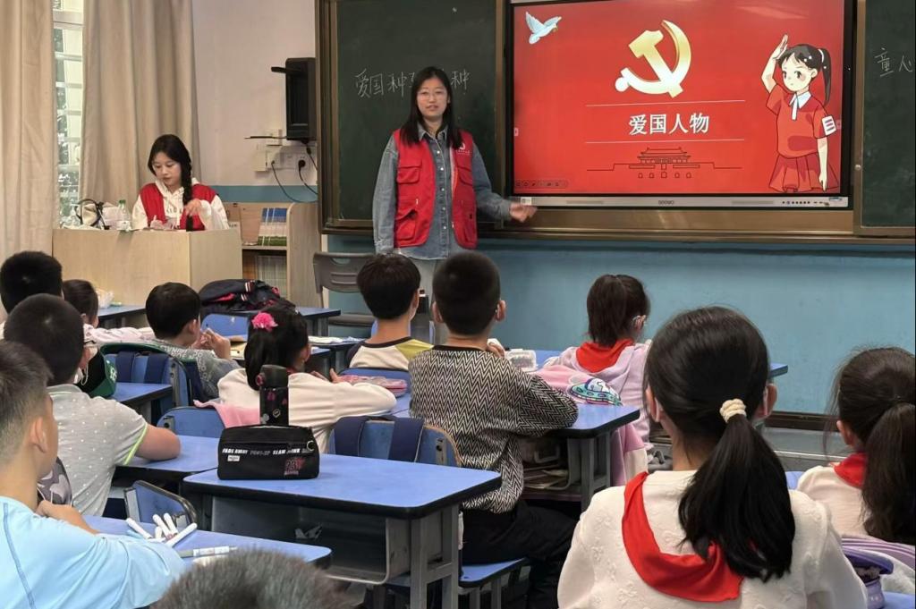 当然,小愿也为同学们介绍了一些爱国人物:杂交水稻之父袁隆平、肝胆外科之父吴孟超、两弹元勋钱学森、优秀共产党员张桂梅……在介绍的过程中,同学们全神贯注地将目光放在了小愿以及所展示的爱国人物身上,一双双童真的眼睛映射出的不仅仅是对知识的渴望,还有对爱国人物的敬畏。通过这些爱国故事,同学们的爱国热情更加高涨。