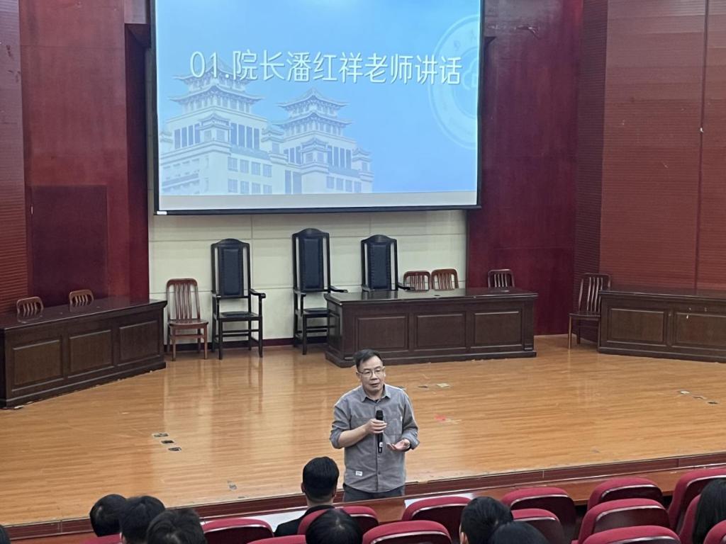 活动伊始,院长潘红祥发表了重要讲话。他强调了实习在法学教育中的重要性,指出实习是理论与实践相结合的关键环节,能够帮助学生们更好地理解和运用法律知识,提升专业素养和职业能力。潘院长对2022 级实习生在实习期间的优秀表现给予了高度评价,肯定了他们的努力和付出,并鼓励 2023 级学生以优秀实习生为榜样,积极投身实习,勇敢面对挑战,在实践中不断成长和进步。