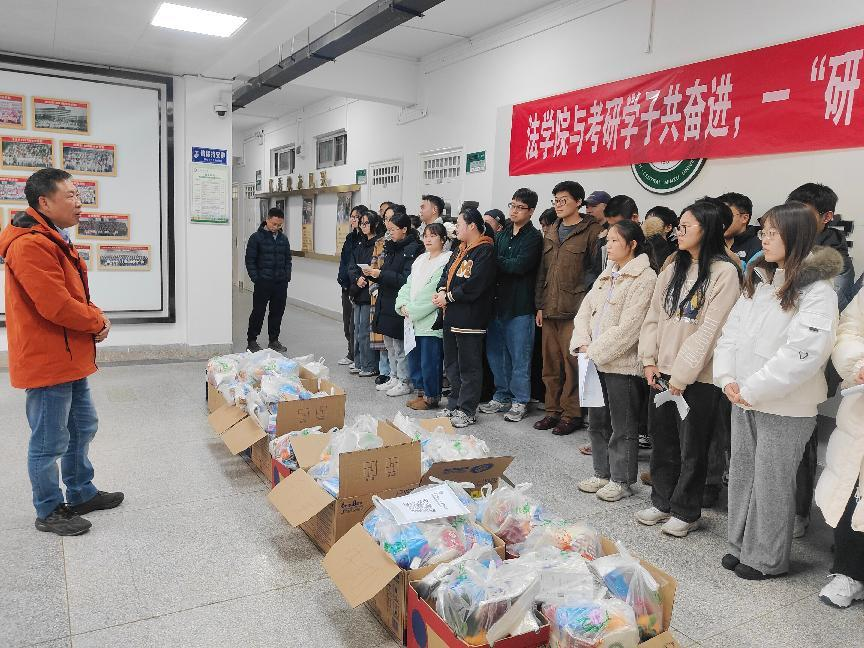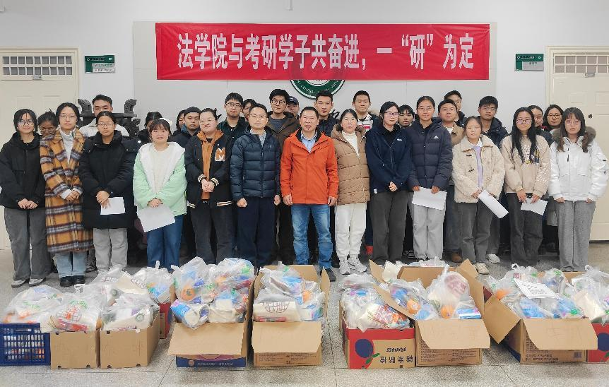 随着考研的钟声越来越近,法学院的学子们正紧张而有序地进行着最后的冲刺。在这个充满挑战与期待的时刻,12月5日,“考研礼包大放送”活动在2021级辅导员张利菊老师的主持下于法学院一楼大厅举行。此次活动旨在为考研学生们送上学院的温暖与祝福,助力他们在考研的道路上勇往直前。