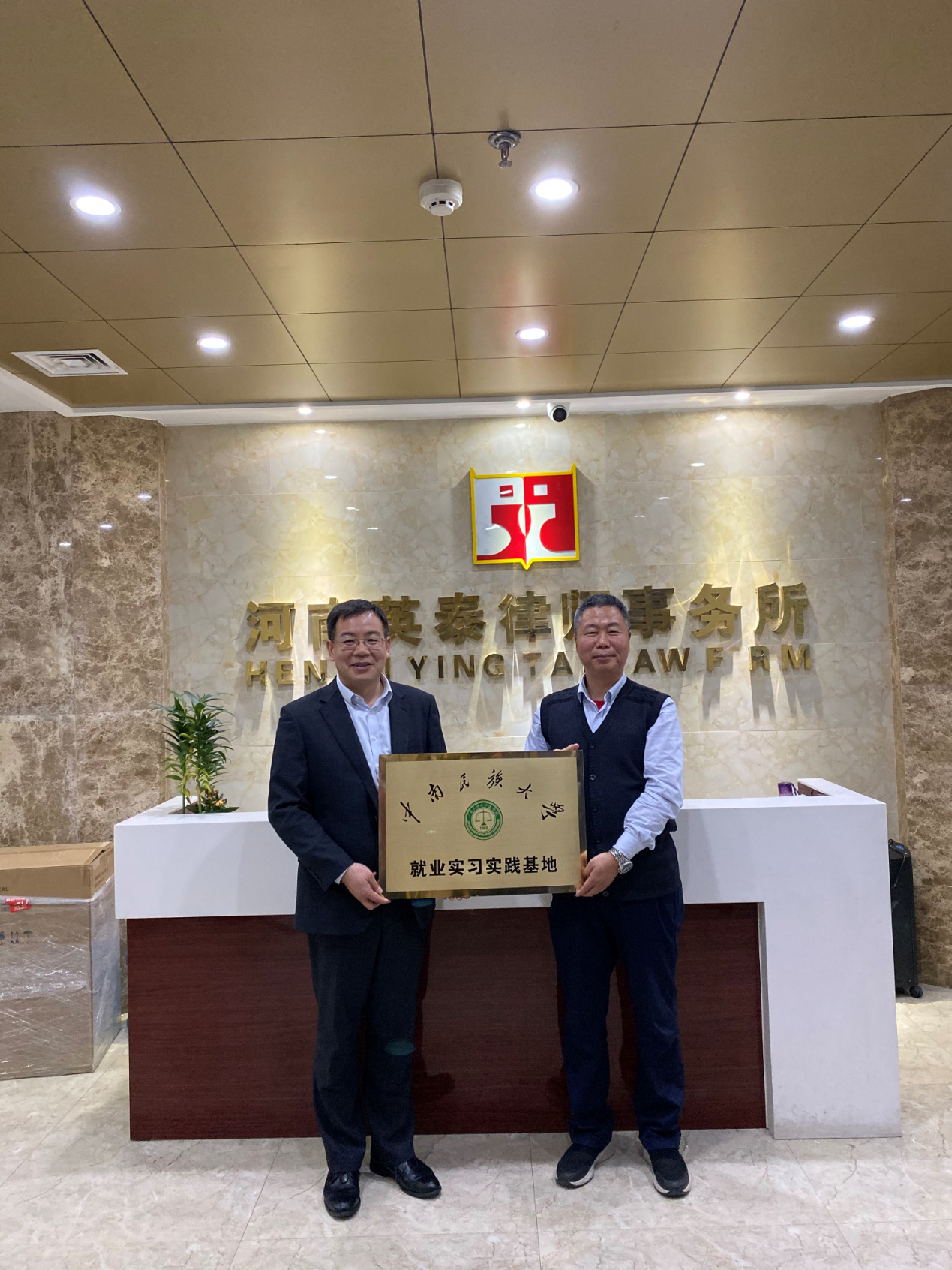 (潘红祥院长一行走访河南英泰律师事务所) 随后,我院潘院长与英泰律所宋延伟主任签订了《beat365英国正版唯一网址·河南英泰律师事务所就业实习实践基地建设协议》,并进行了接牌仪式。