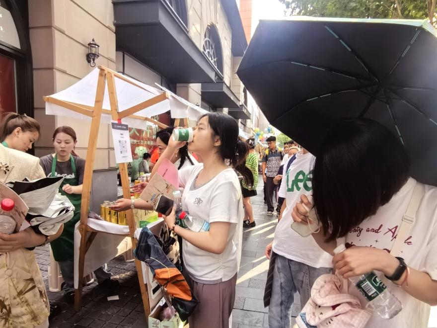 图为同学们品尝时尚消费市集产品