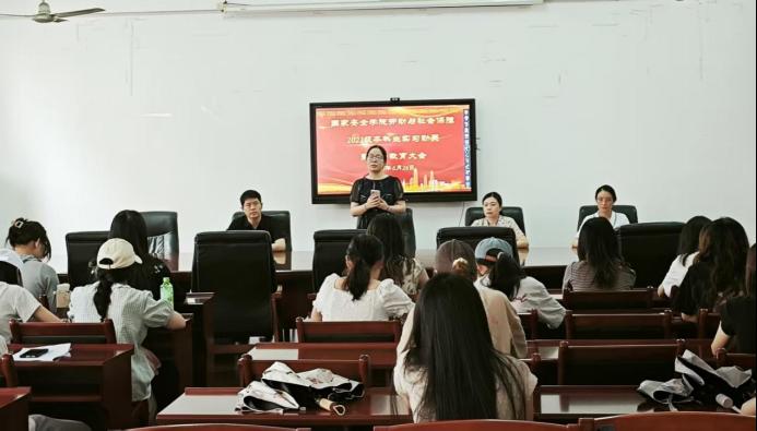 为了促进学生理论知识学习与专业实习实践相结合,保障暑期集中教学实习活动顺利开展,国家安全学院健康保障与社会安全系于6月26日在15号楼818会议室召开2023级劳动与社会保障专业本科生暑期集中实习行前动员暨安全教育大会。会议由系主任周娟老师主持,各实习指导教师出席本次会议。