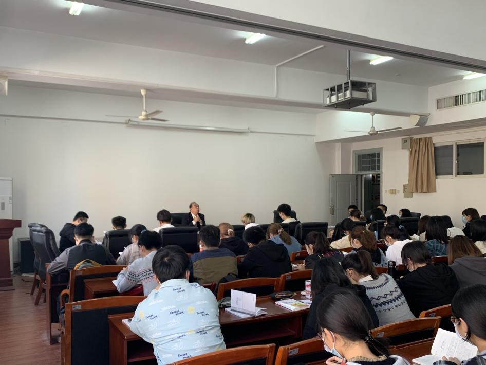 2020年11月10日中午,公共管理学院90期入党积极分子培训班第三讲在15栋818召开,我院正处级专职组织员丁弘书记、17级辅导员张海燕老师以及各位学员参加本次培训讲座。本次讲座由张海燕老师主持、丁弘书记主讲。