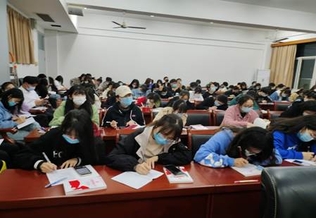 下午七点开班仪式正式开始,全体起立奏唱国歌。主持人详细介绍了入党积极分子培训班的考核标准、课堂要求,强调入党积极分子们认真做好课堂笔记,课后撰写思想汇报及开展讨论工作。各位积极分子年级组长依次进行了自我介绍,便于后续工作的开展以及为学员们的更好的服务。七点十分,陈昌华书记针对本次培训班开班仪式进行讲话,首先向全体入选积极分子的同学们表示祝贺并提要求,深切表达了对每一位学员的期望。接下来为本次培训课开展了第一讲的授课。