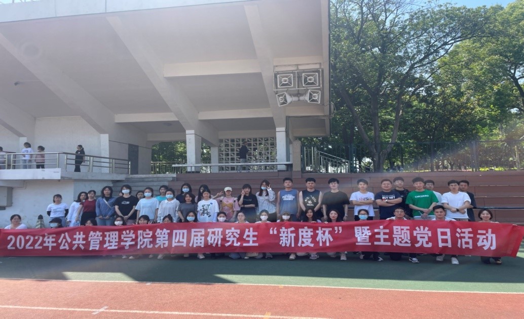 2022年5月5日,我院在南湖操场开展第四届研究生“新度杯”暨主题党日活动。公共管理学院副院长饶映雪、研究生辅导员、教学秘书雷盼等出席本次活动。