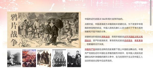 接下来,饶老师带领同学们学习了“中国近现代史的发展历程”和建党历程。饶老师在“中国近现代史发展历程”部分,先后向同学们讲述了“鸦片战争”、“三元里抗英斗争”、“太平天国抗击侵略”、“义和团抗击侵略”和“辛亥革命”。饶老师让同学们系统地了解了中国近现代史的发展。之后,饶老师向同学们介绍了“南陈北李,相约建党”,结合之前比较热门的影视剧《觉醒年代》,给同学们分享了自己的一些感受。饶老师介绍了中共一大召开的曲折历程,说明了共产党成立的伟大历史意义。饶老师还特别强调了毛主席的革命乐观主义精神,“星星之火,可以燎原”,这句话语,掷地有声。