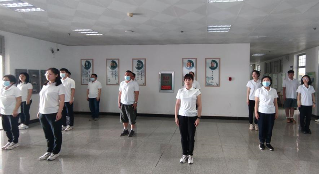“八段锦”健身操是中华民族传统体育项目,易学实用。由八种如“锦”缎般优美,柔顺的动作组成,动作柔和连绵,动静相兼。在一招一式的练习中,学院教职工们积极热情、认真锻炼,讨论动作细节,现场气氛活跃欢乐。
