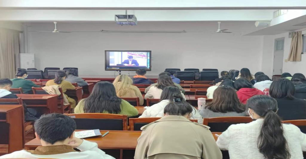 2022年11月26日星期六,公共管理学院全体研究生汇集在15栋教学楼818会议室观看了2022年校研究生大会的现场直播。