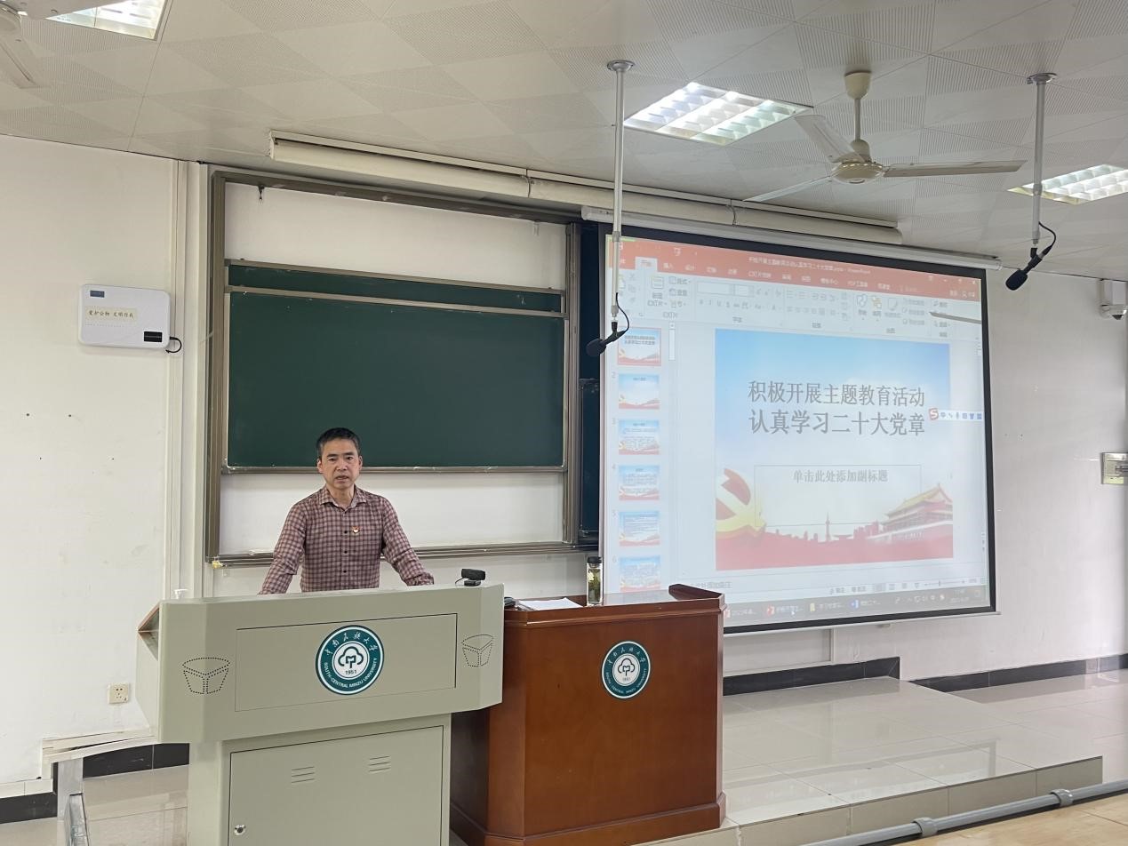 接着陈昌华书记为大家讲授了题为《积极开展主题教育 认真学习二十大党章》的党课,陈书记先用“唱好一首歌”,带领同学们领会了歌曲背后的意义。然后,陈书记带领同学们“欣赏一首诗”,与同学们体会党章这一《共产党人的精神富矿》。接着,阐述了党章的概念以及与党内法规、国家法律的关系,最后,陈书记详细介绍了党的二十大通过的《中国共产党章程(修正案)》的总纲以及部分章节。