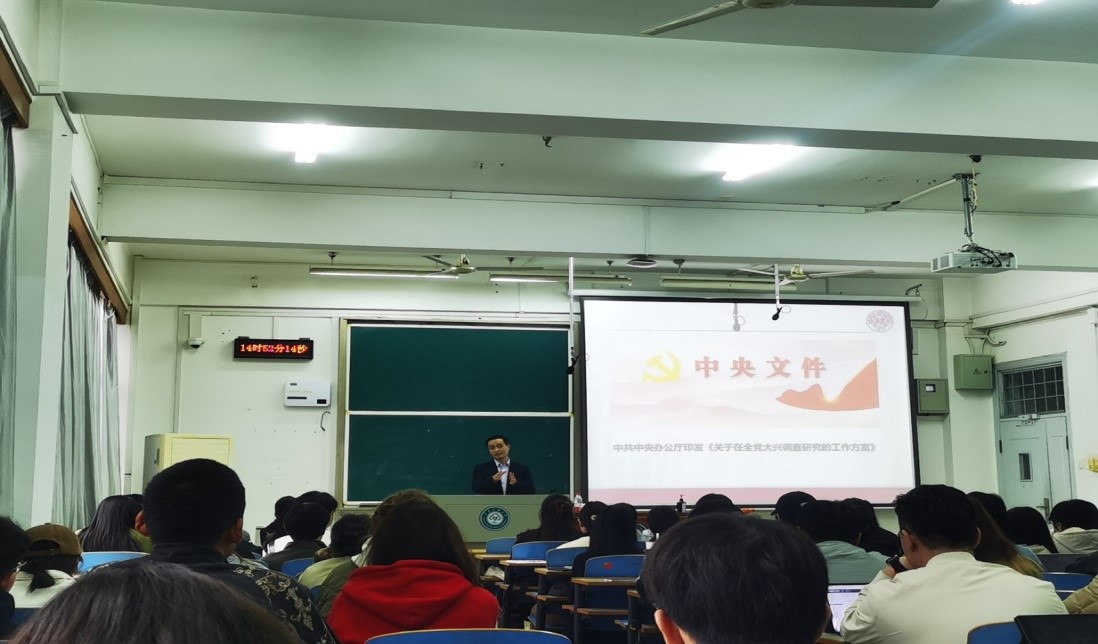 为深入开展学习贯彻习近平新时代中国特色社会主义思想主题教育活动,贯彻落实中共中央办公厅颁发的《关于在全党大兴调查研究之风的工作方案》,4月23日下午,学院邀请南开大学周恩来政府管理学院副院长吴晓林教授在15号楼609教室为全院党员干部师生进行专题讲座。讲座由学院党委委员彭庆军教授主持,学院党委书记陈昌华、各党支部主要成员、部分学生党员以及2020级行政管理专业学生共计120余人参加。
