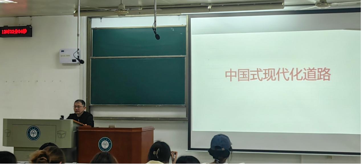 5月10日中午12:30,公共管理学院2023年春季党校培训第三次党课在15栋103教室顺利进行。本次党课由李海鹏老师主讲,主题为《中国式现代化道路》。