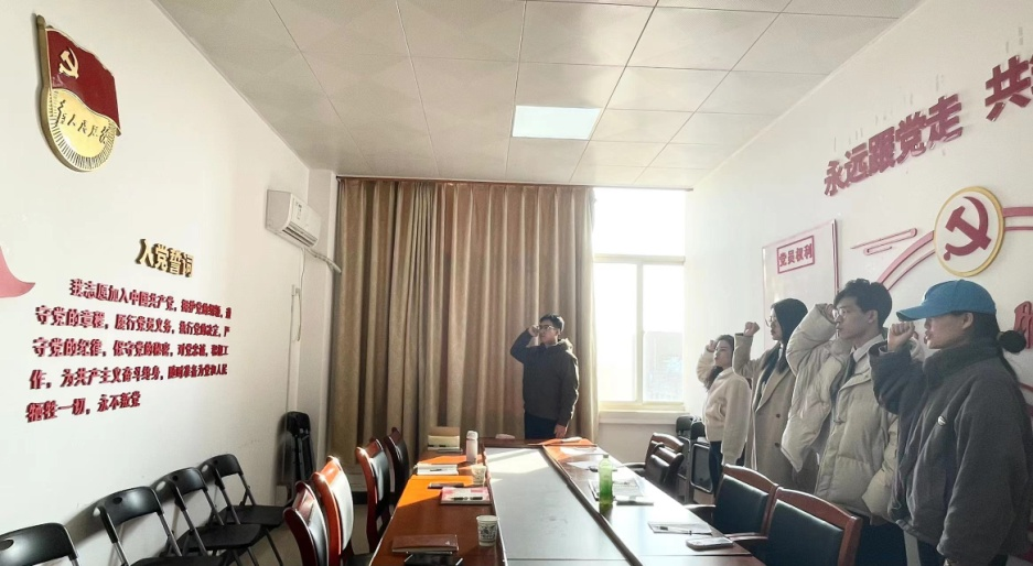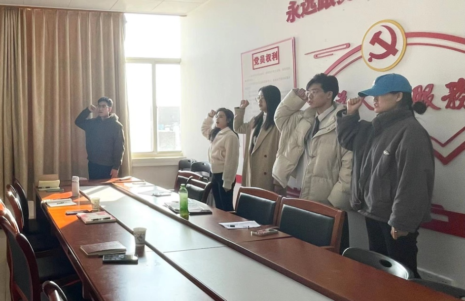 带着杨燕老师的深切期望,同志们的目光聚焦到入党誓词墙上,宣誓仪式正式开始。由2023级研究生团支部书记、正式党员代表牛佳伟领誓,研究生预备党员曹旭杰、王妍妍、罗玉香、叶多面对党旗,庄严宣誓。宣誓声中,每一位预备党员都表达了自己对党的忠诚和对党的事业的坚定承诺。