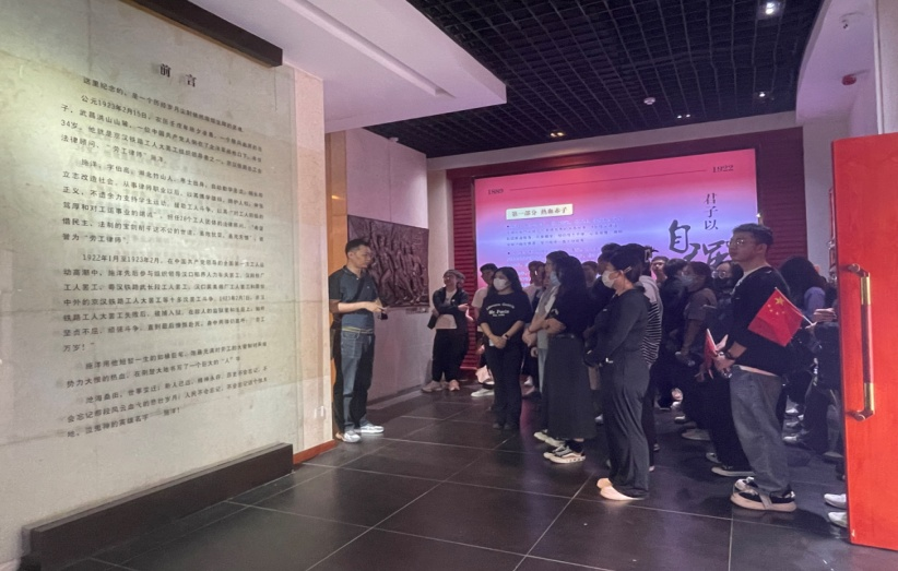 图为陆星雨同志讲解施洋烈士英勇事迹