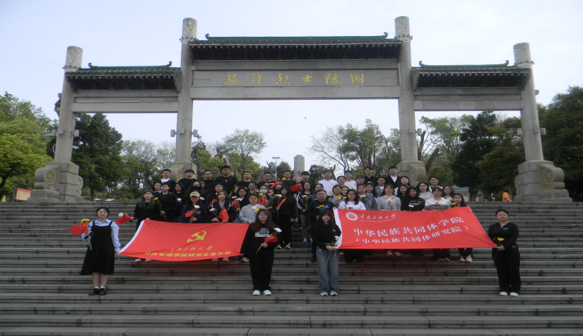 图为公共管理学院研究生党支部与中华民族共同体研究院党支部在烈士陵园前会合