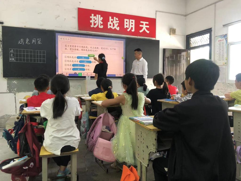 为了解大水学校课堂教学情况,开展课堂教学研讨,我院MPA研究生党员,武汉市光谷第二十五小学教师覃堃为四年级学生带来了一堂“鸡兔同笼”问题的示范课,覃堃充分结合了各种信息技术手段,以图文并茂的方式讲述了“鸡兔同笼”问题的四种解法,课堂上师生互动频繁,气氛十分活跃。我院研究生党员,曾赴贵州省印江县罗场乡罗场中(小)学支教一年的汤芳为五年级学生带来了一堂生动的音乐课,师生一起同唱红色歌曲。此外,我系入党积极分子黄雅静、程卓颖为幼儿园小朋友分发了带来的文具、绘本、益智玩具等,并与小朋友们一起唱儿歌、做游戏。