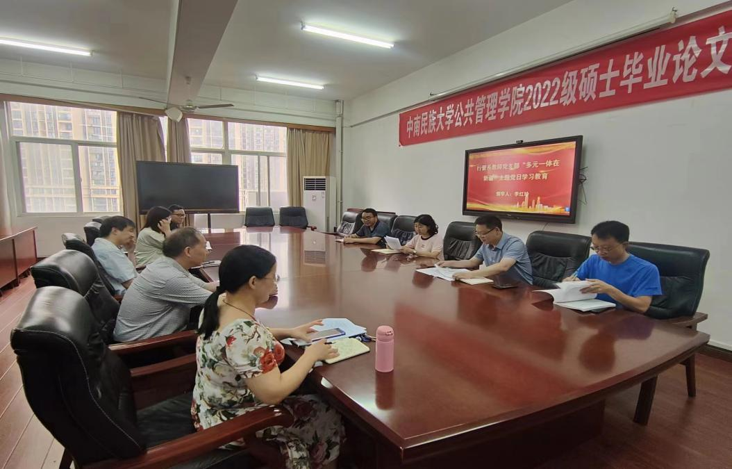 为深入贯彻落实中央有关精神,根据上级工作要求,公共管理学院行政管理系党支部于6月20日中午在15-818举行主题党日教育学习活动,本次活动主题是学习国家民委主任潘岳同志《多元一体在新疆——在“中国新疆的历史与未来”国际论坛上的致辞》(道中华)。