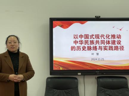会议伊始,叶慧教授结合《中华民族共同体概论》教材讲述了以中国式现代化推动中华民族共同体建设的重要意义。在讲座进行过程中,叶慧教授将讲授的内容和党的二十届三中全会精神、习近平总书记在全国民族团结进步表彰大会上的重要讲话紧密结合,以时间为脉络,梳理了新中国成立以来我国现代化建设的具体实践路径。当中国特色社会主义进入新时代,中华民族迎来了从站起来、富起来到强起来的伟大飞跃,中华民族共同体建设进入新的历史发展阶段。全面建设社会主义现代化国家的新征程上一个民族都不能少,共同团结奋斗、共同繁荣发展。新征程上,要赋予所有改革发展以彰显中华民族共同体意识的意义,以维护统一、反对分裂的意义,以改善民生、凝聚人心的意义,让中华民族共同体牢不可破。叶慧教授的讲座将三中全会精神与理论实践相结合,让与会人员更好地理解中国式现代化与铸牢中华民族共同体意识的内在联系,对党的二十届三中全会精神和铸牢中华民族共同体意识形成了更加系统化的认知。