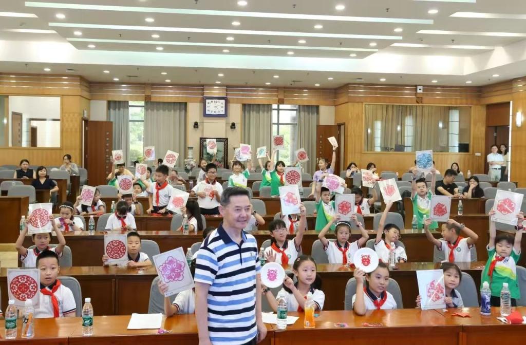 在非遗剪纸课堂,湖北省工艺美术大师沈松柏老师执剪示范,带领学生们在红纸上精心镂刻出“哪吒”“春”等充满中华韵味的图案。剪刀翻飞间,孩子们屏息凝神,指尖流淌的不仅是对传统技艺的探索热情,更是对文化根脉的深切体认。一张张剪纸作品,成为无声的爱国宣言,将维护文化安全、传承民族精粹的种子悄然埋入心田。