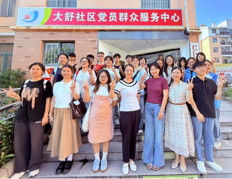 图为赴佛祖岭街道社区实习师生和街道工作人员合影